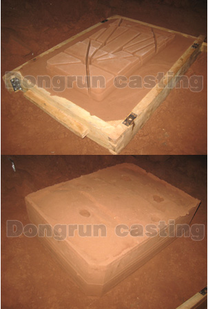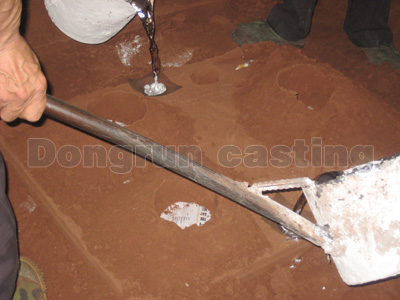 Schritt 2: Sandguss: Gießen Sie das geschmolzene flüssige Metall durch die Entwässerungsöffnung in den Hohlraum der Sandform, warten Sie 5 bis 30 Minuten, um das flüssige Metall abzukühlen und zu verfestigen, lassen Sie die Form los und treten Sie in den anschließenden Mahl- und Trimmprozess ein